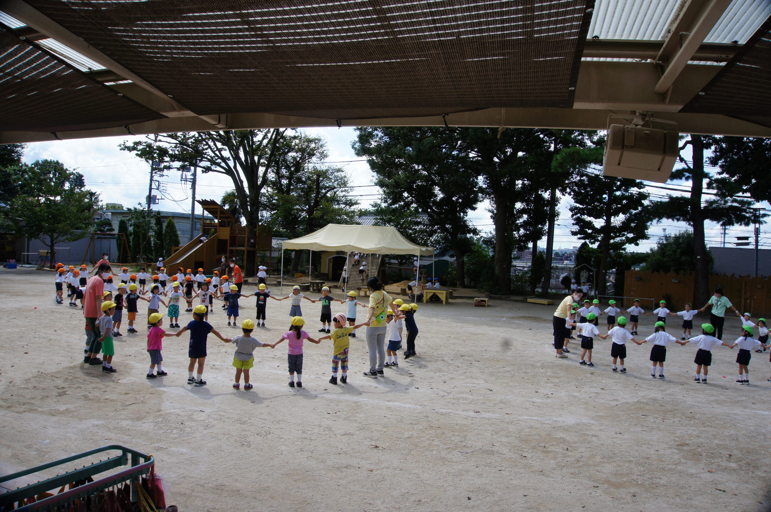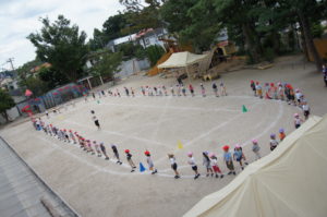 クラスごとに円になって踊りますよ![]()