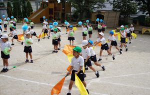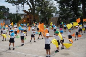 年長組さんは、ダンスにバルーンにリレーと、大変です![]()