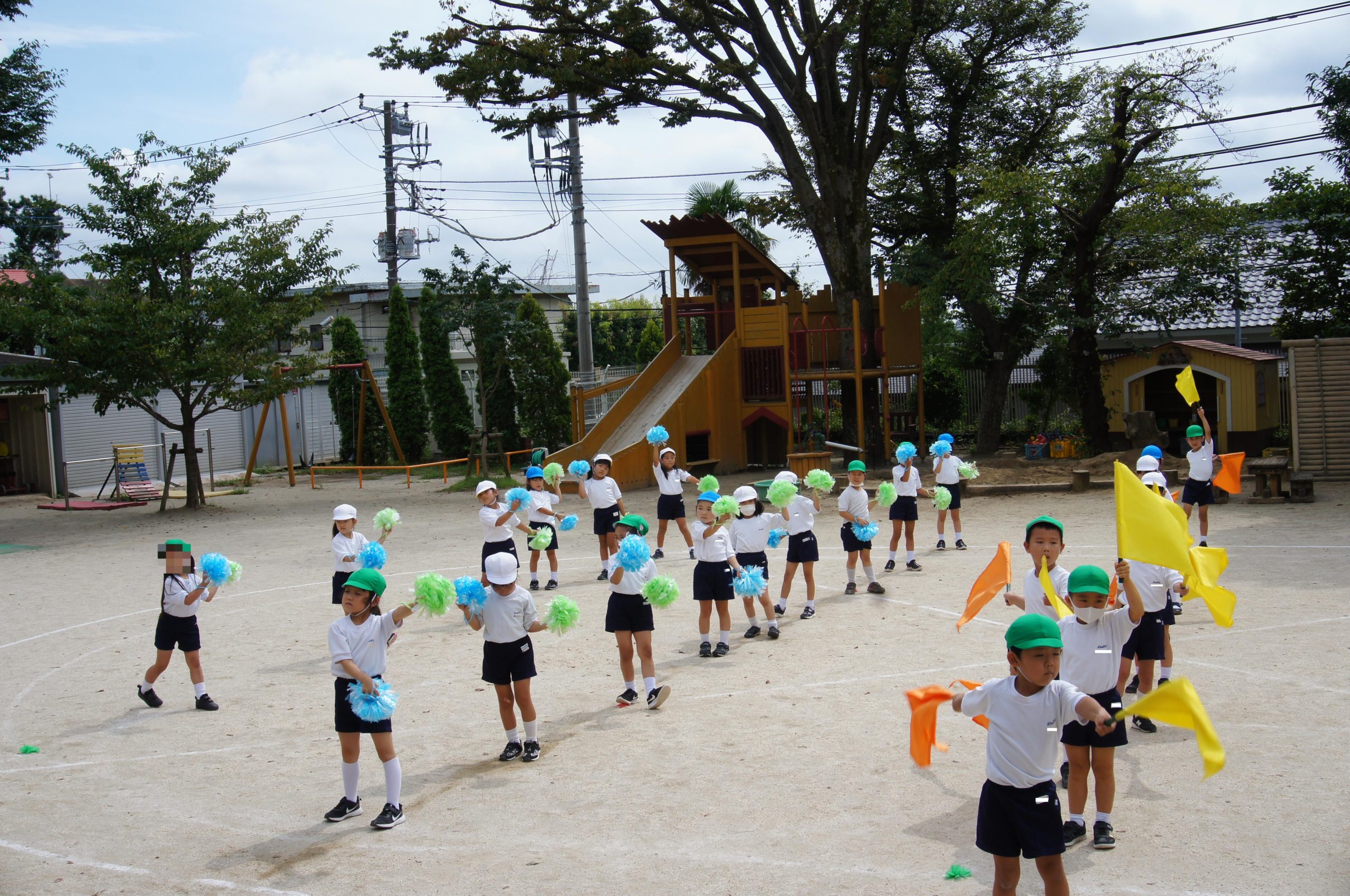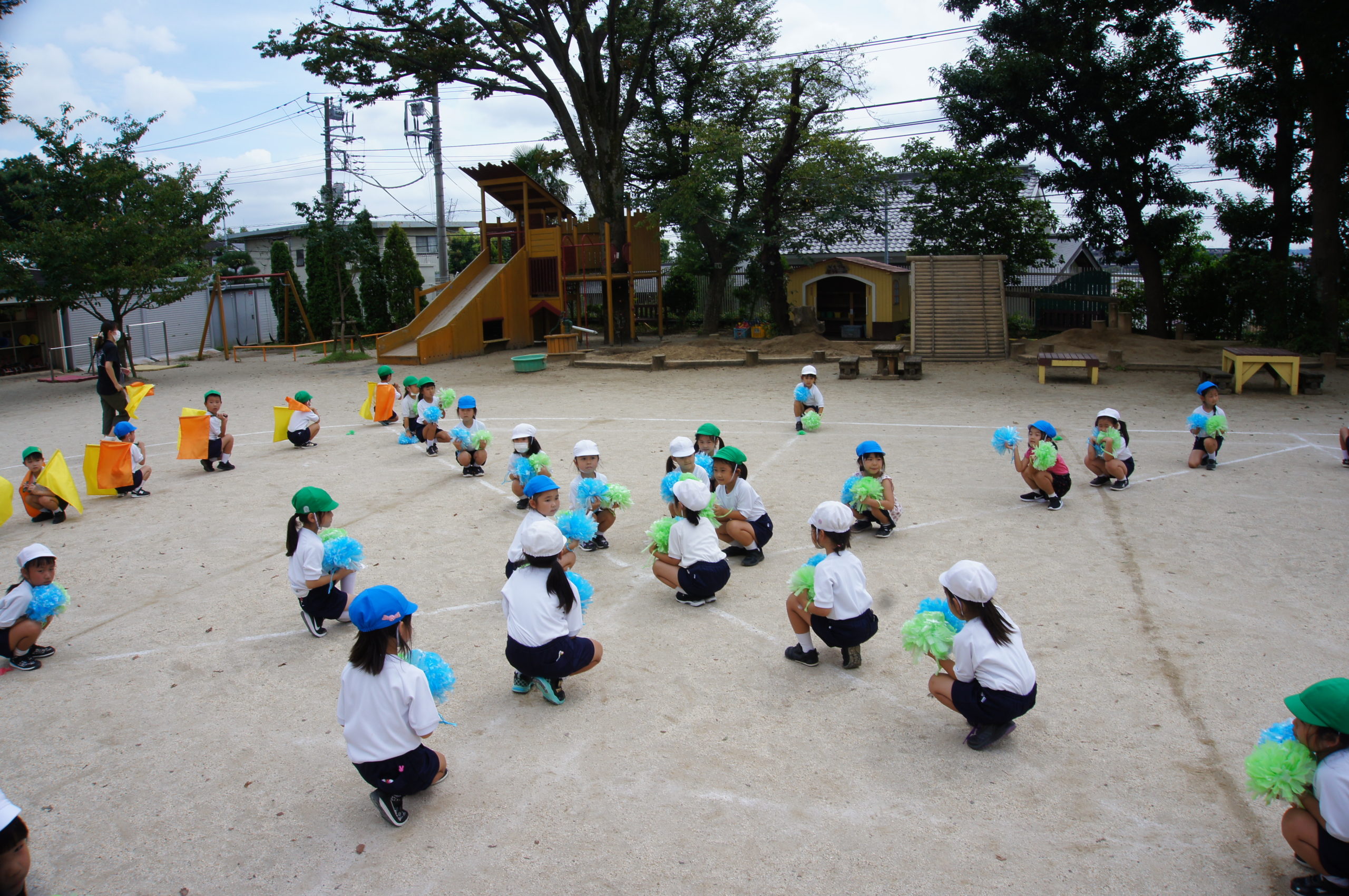 」の曲に合わせて、旗とポンポンを持ってLet`s ダンシング~![]()