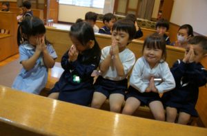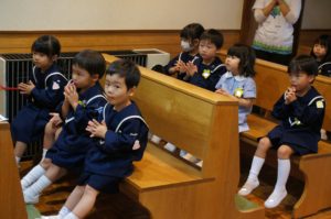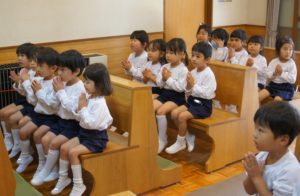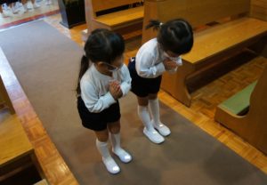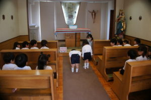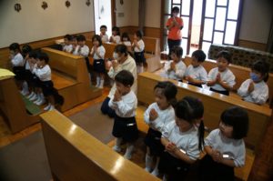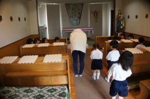 先日は、年中長さんのお聖堂のお祈りの様子をご紹介しましたので、