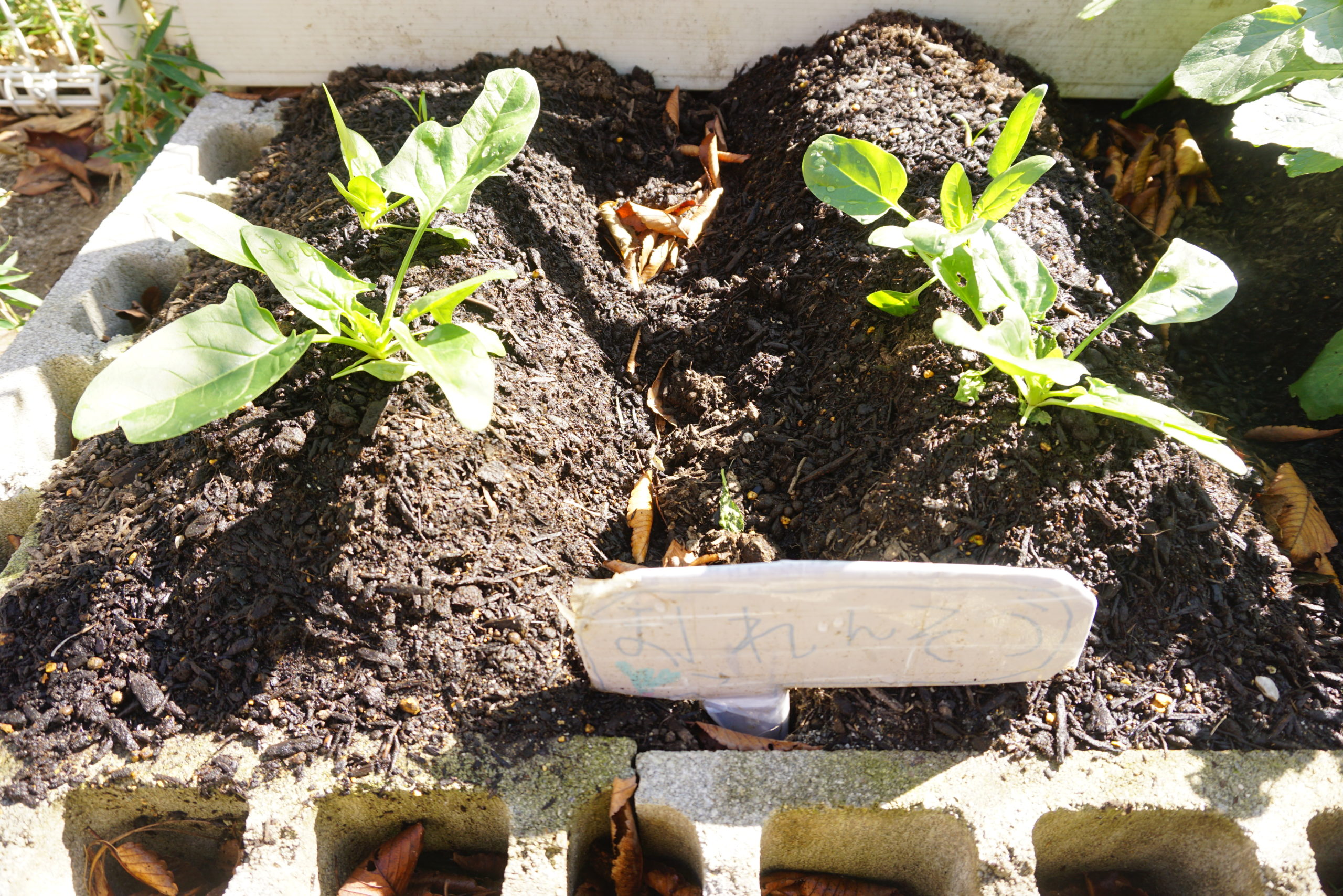 ほうれん草もちょっとずつ葉が大きくなっていますよ![]()