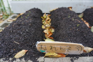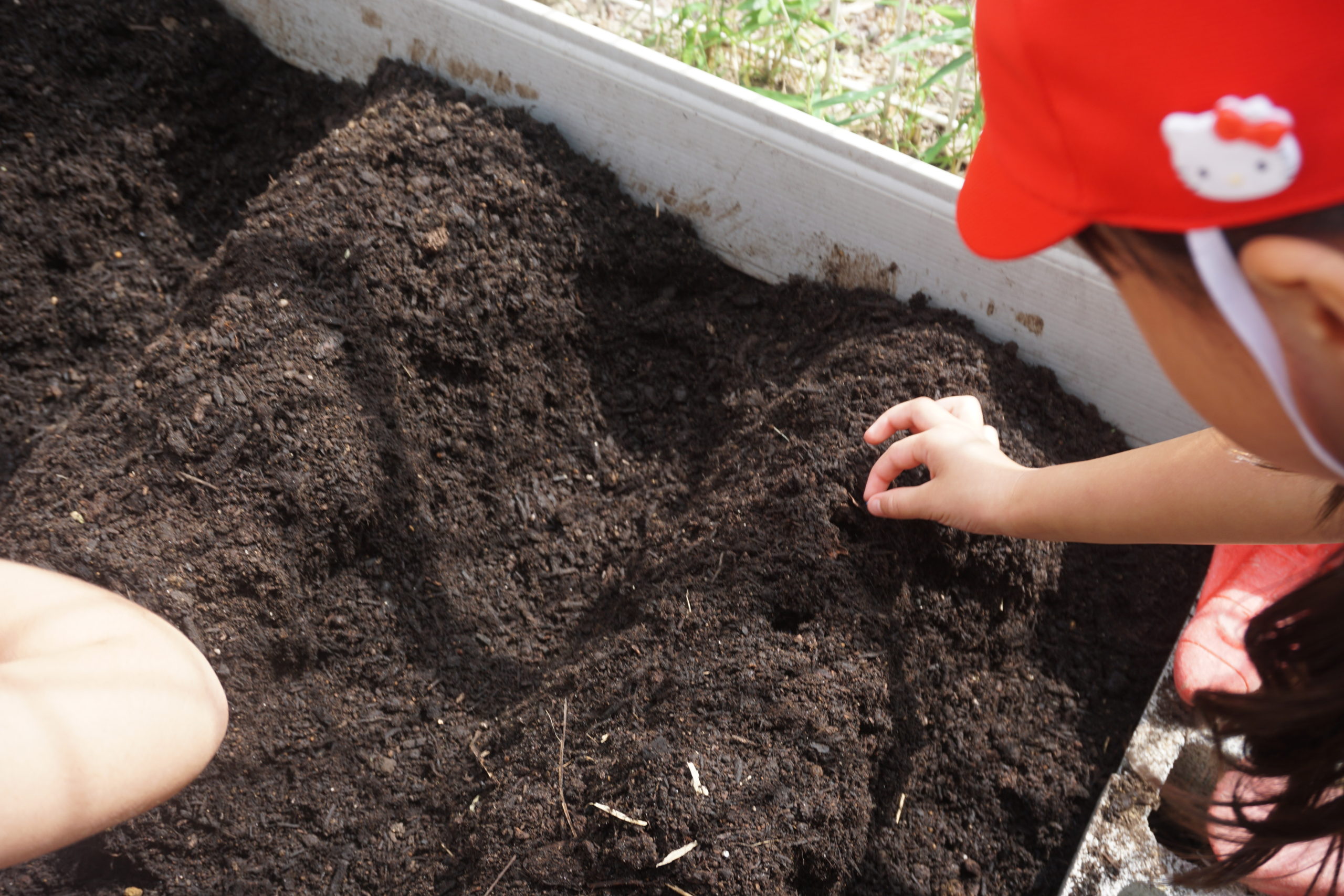 植える時は、指で少し深めに穴を掘って・・・