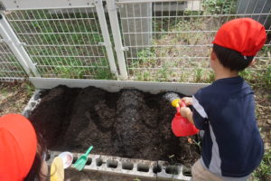 最後にはたっぷりとお水をかけて種植えは終了![]()