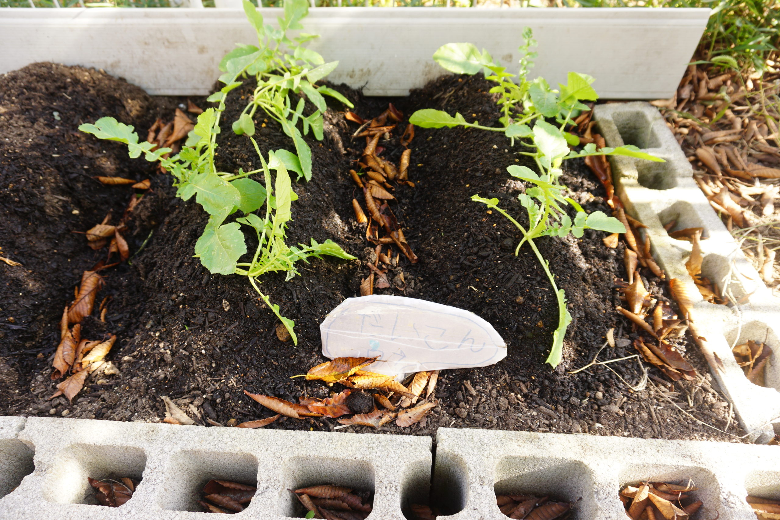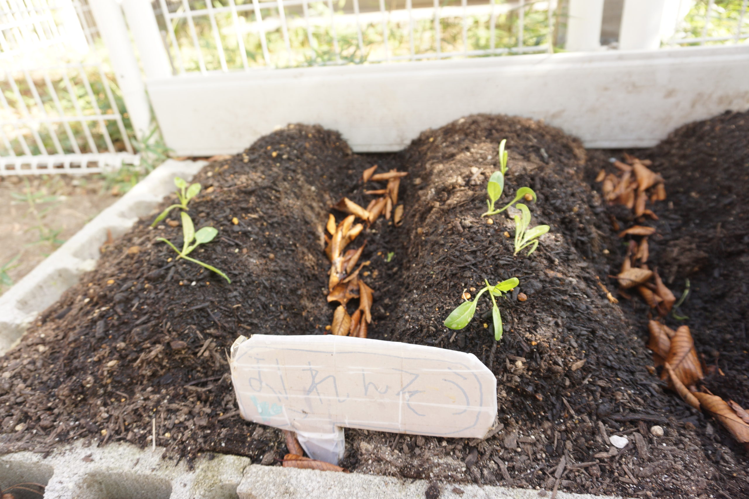 9月の中旬頃、大根もほうれん草も種から植えました![]()