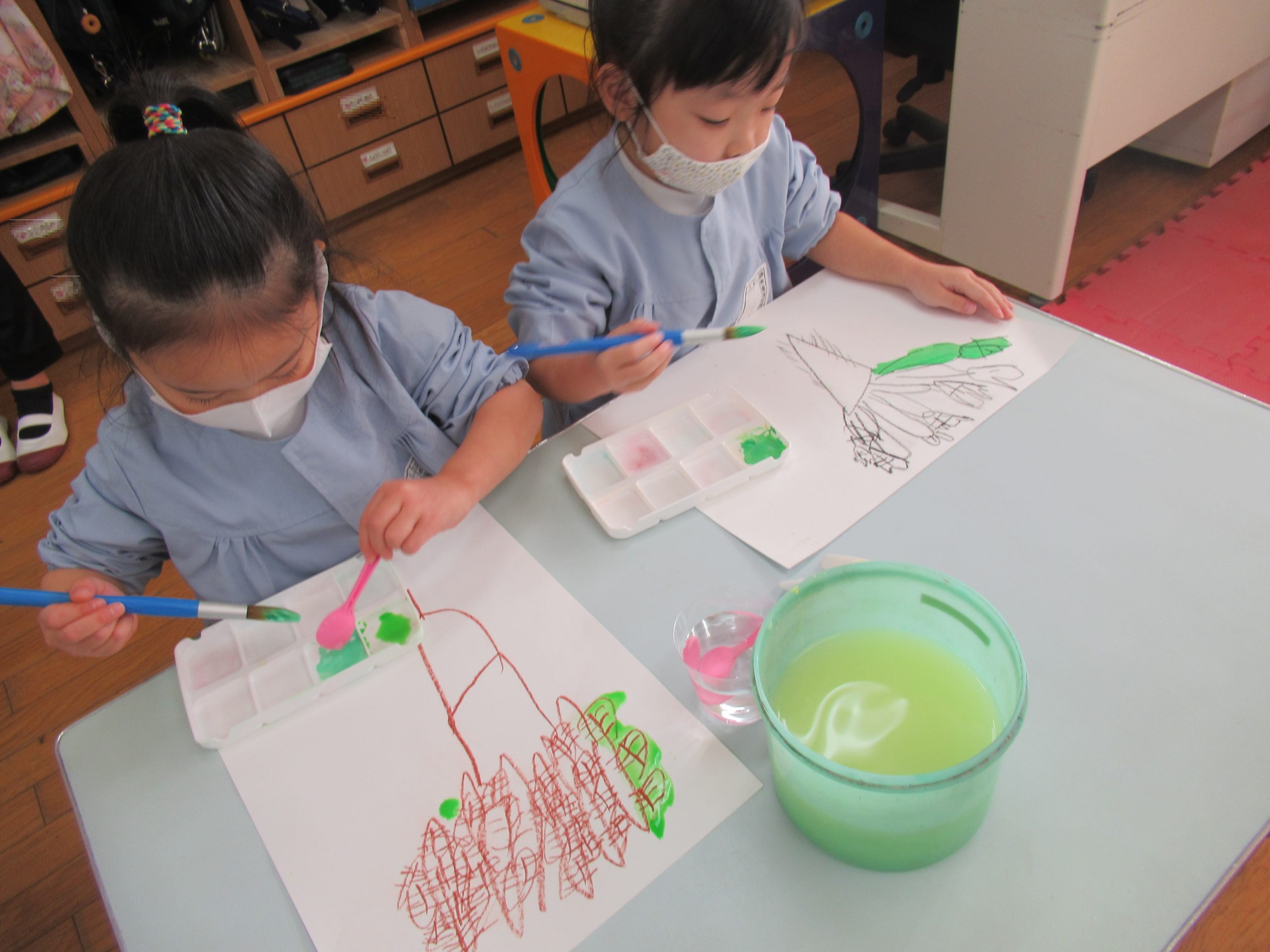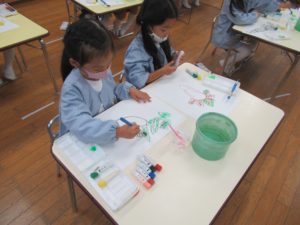 葉の部分は絵の具を使って![]()