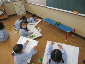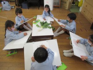 大根かほうれん草どちらか好きな方を選び、絵を描きました![]()