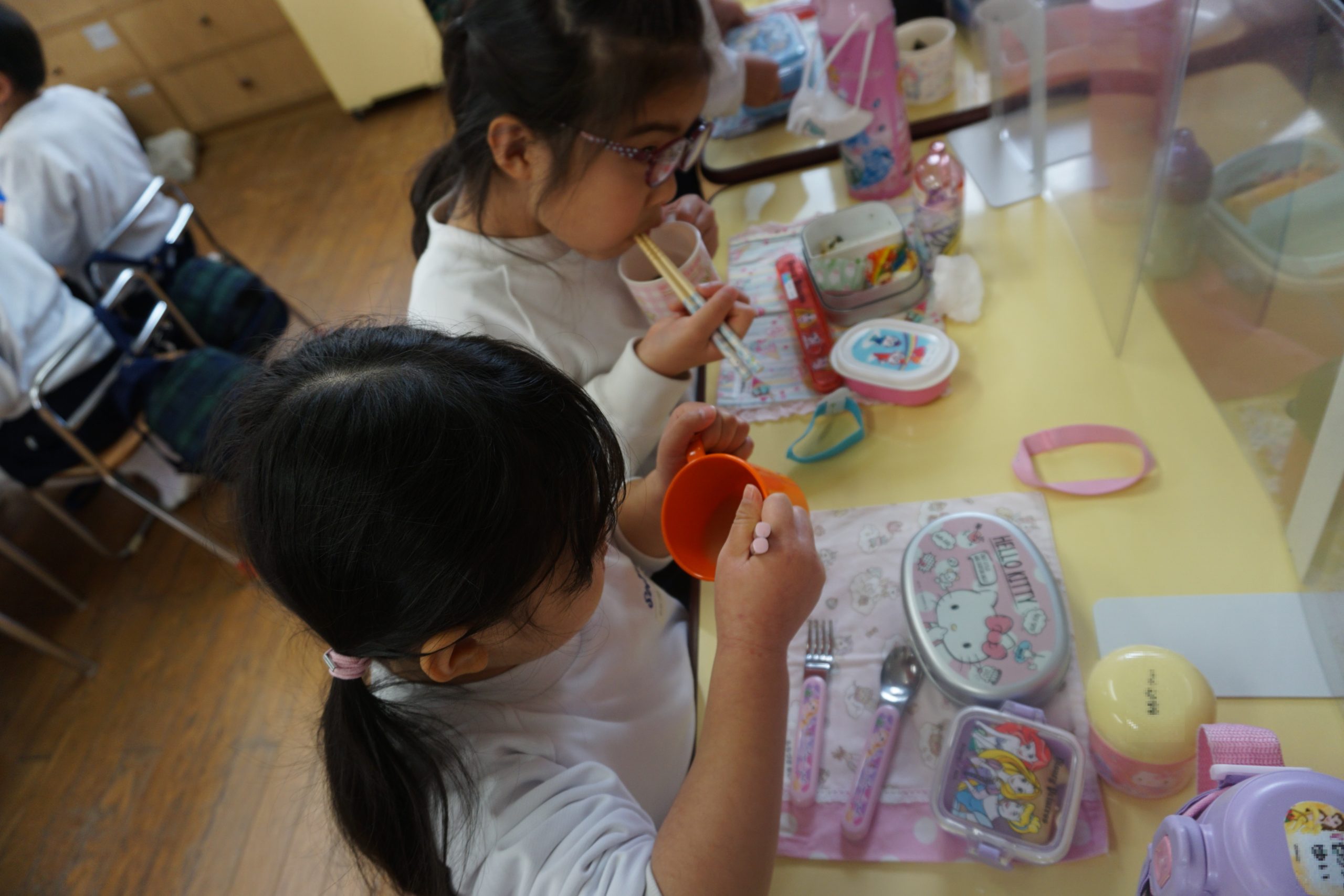 保護者の皆様には急なご連絡にも関わらず、コップと白いご飯のご準備ありがとうございました。