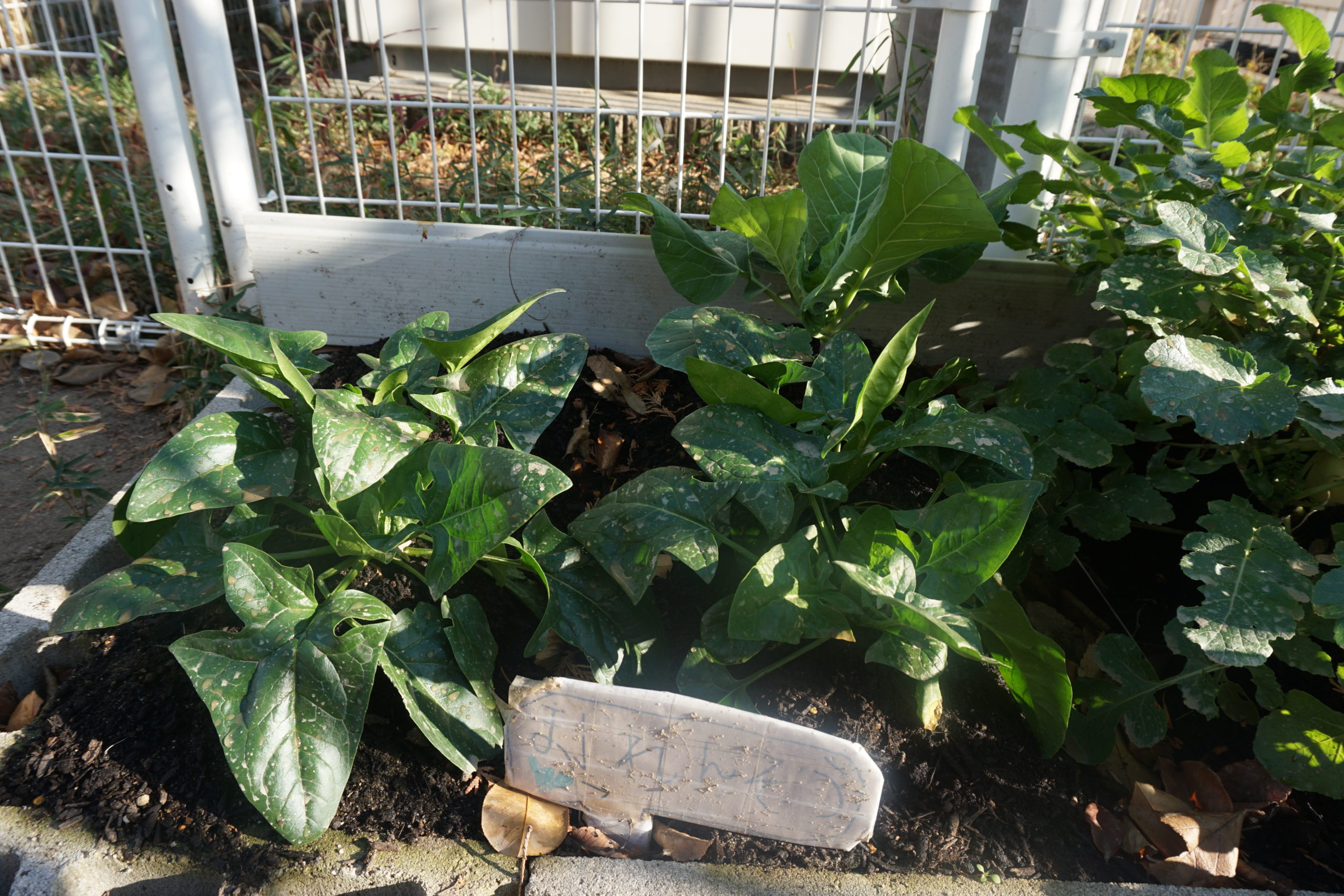 大根もほうれん草もいい感じに成長中![]()