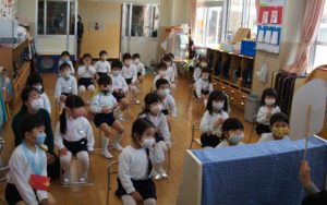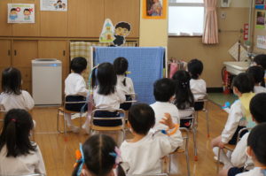 例年だったら、劇団の方をお呼びして遊戯室で観劇をするのですが、今年はみんなで集まるのは危険と判断し、今年は学年ごとにお楽しみをしました![]()