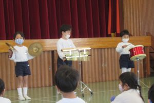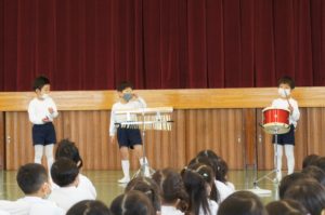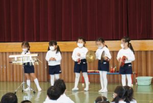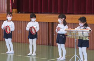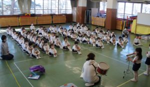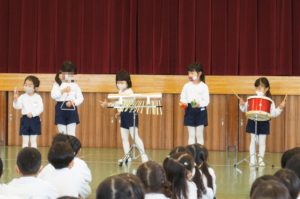 年中組は遊戯室に集まって、合奏発表会![]()