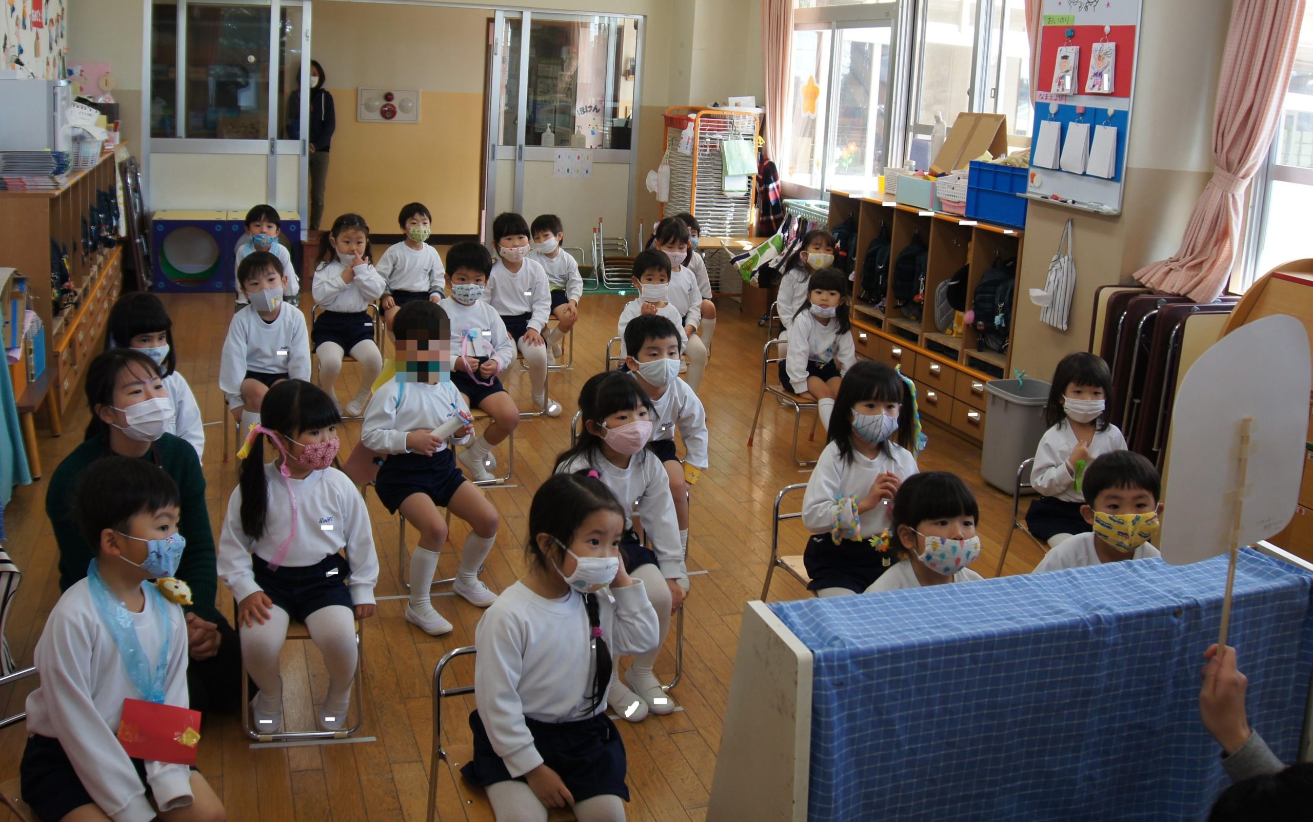例年だったら、劇団の方をお呼びして遊戯室で観劇をするのですが、今年はみんなで集まるのは危険と判断し、今年は学年ごとにお楽しみをしました![]()