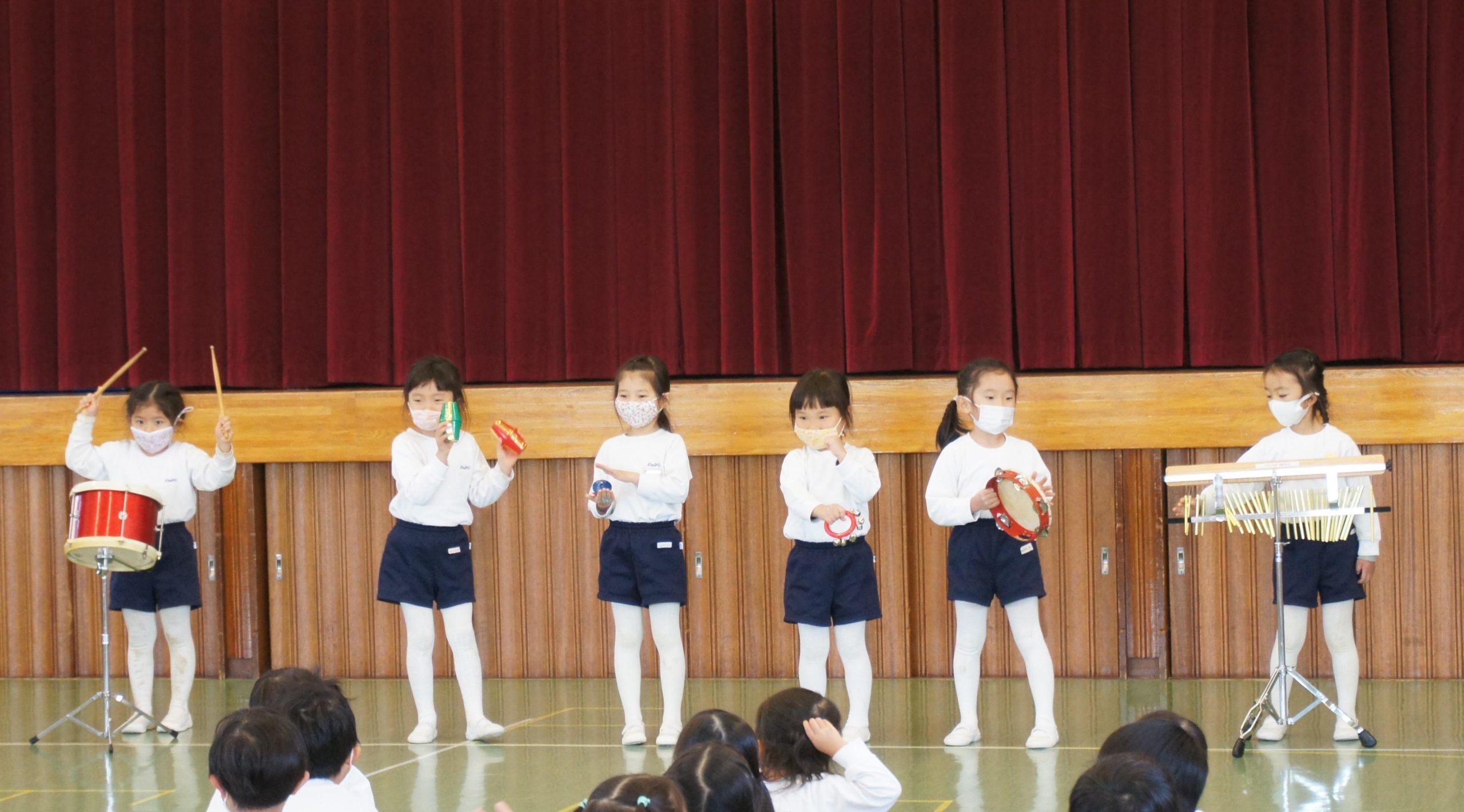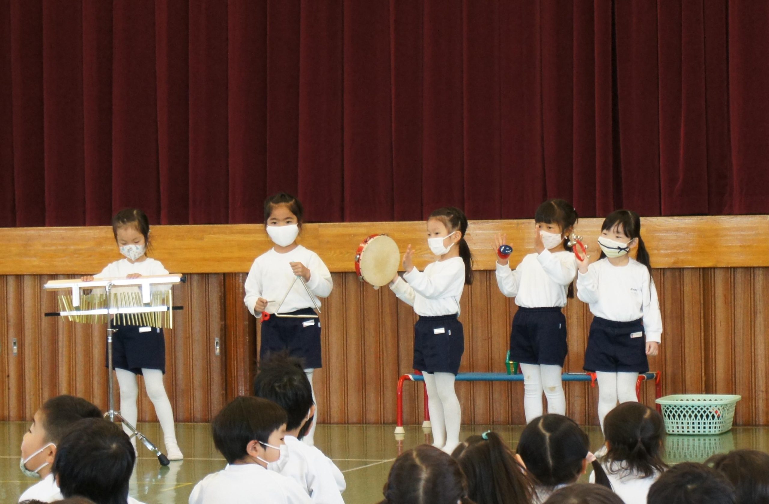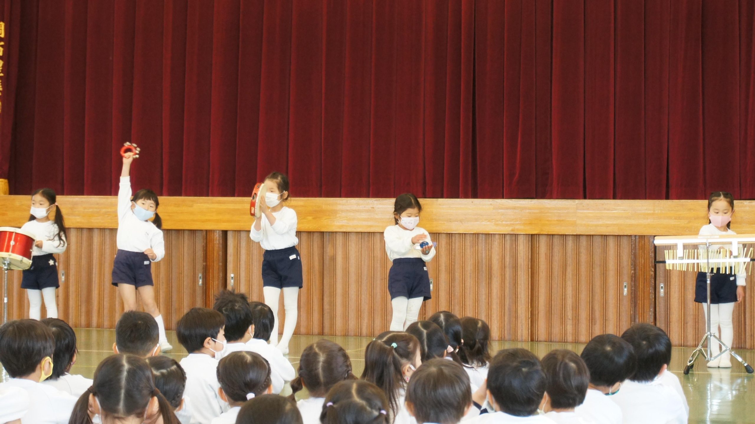 年中組は遊戯室に集まって、合奏発表会![]()
