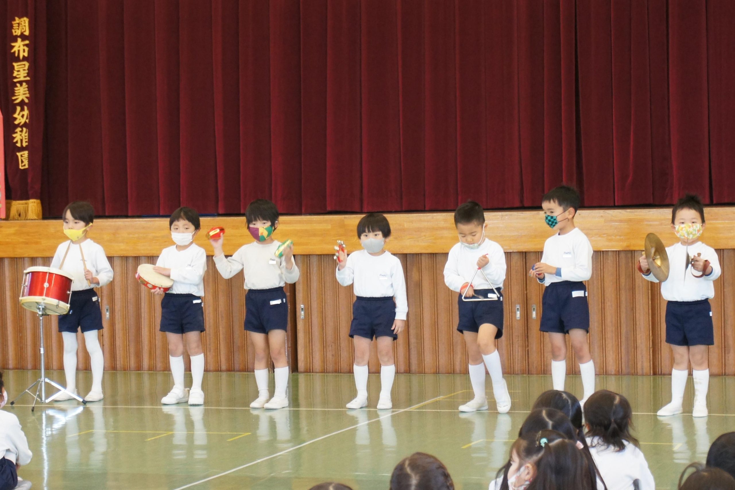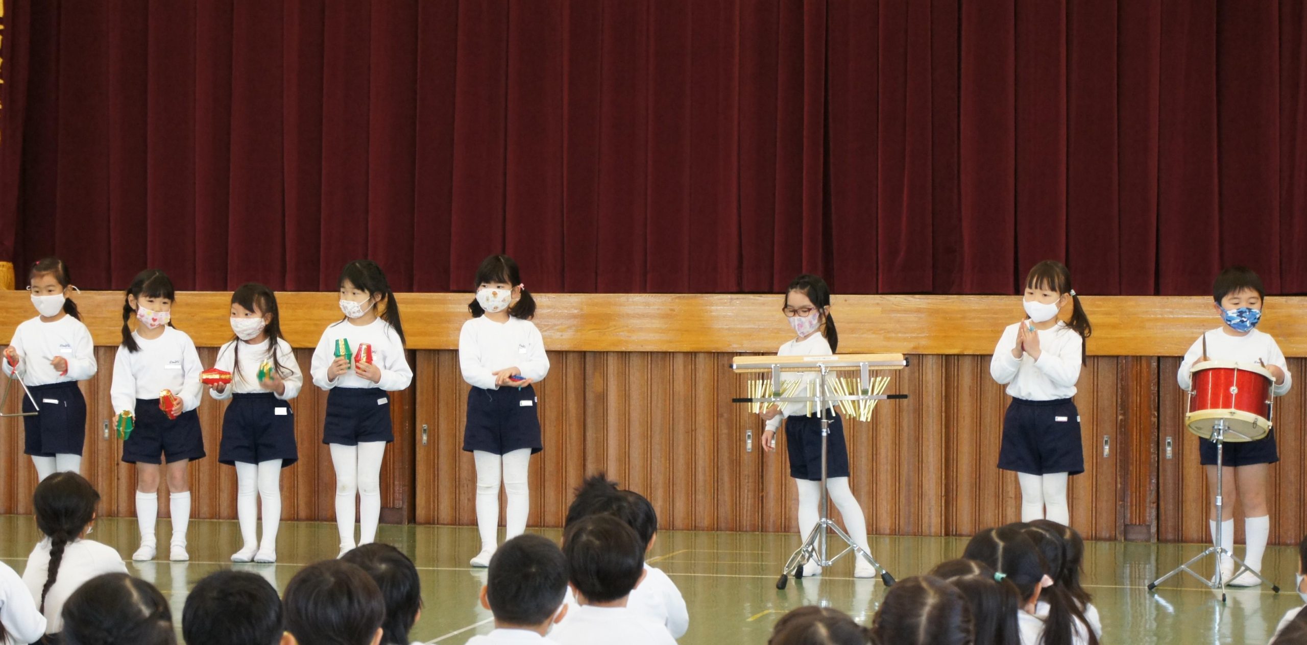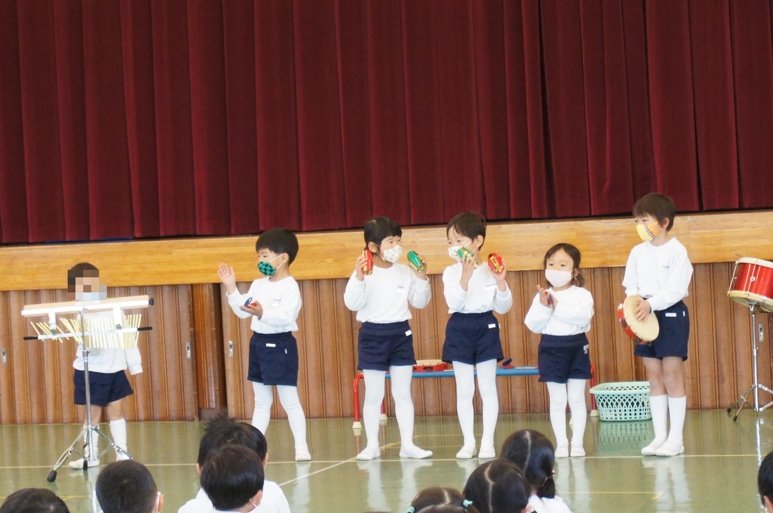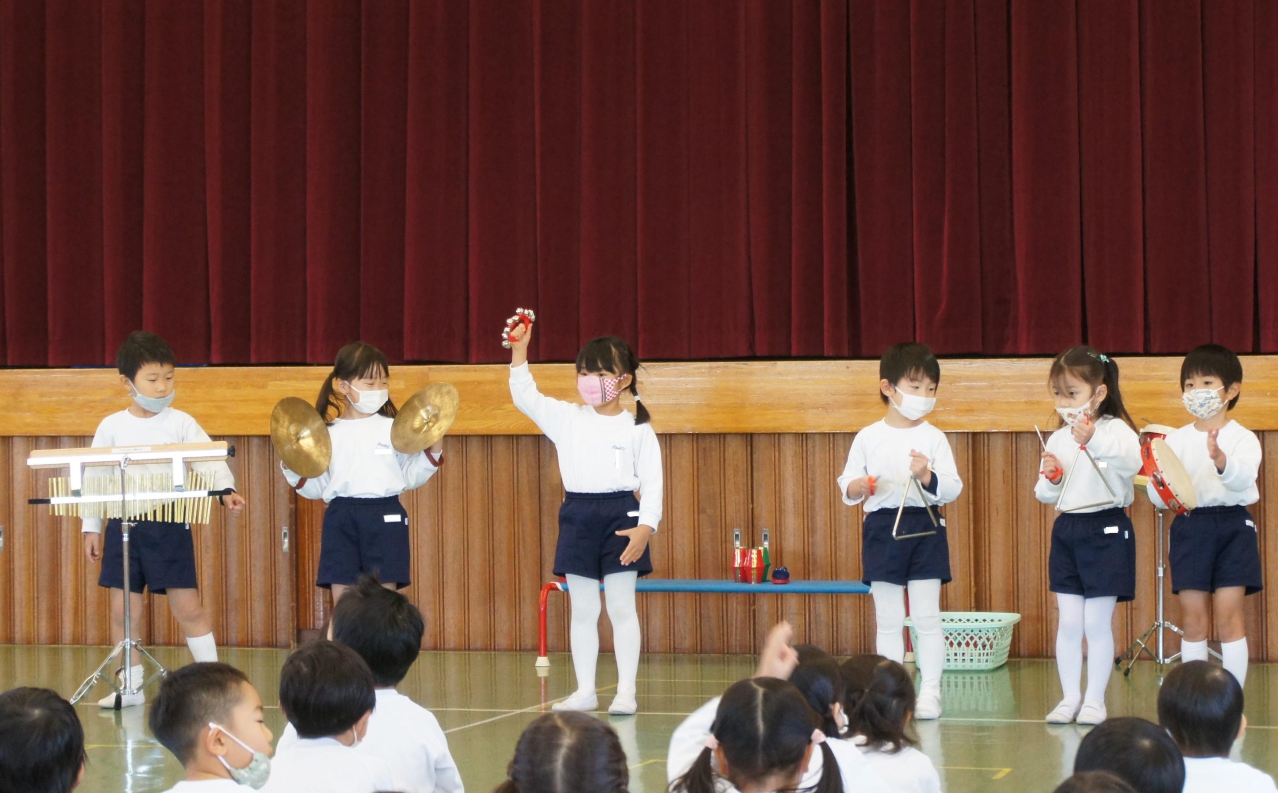 年中組は遊戯室に集まって、合奏発表会![]()