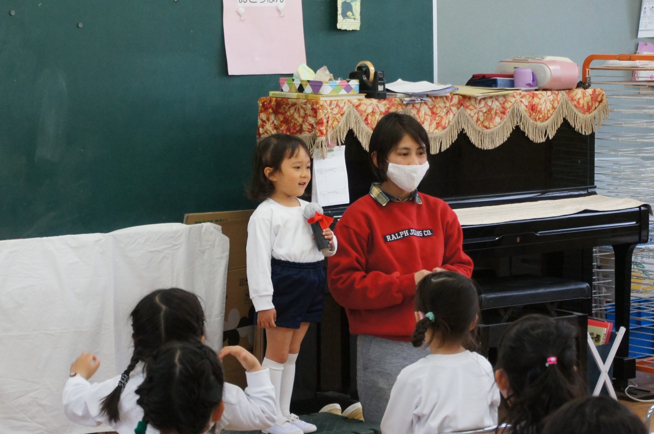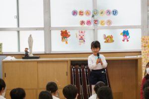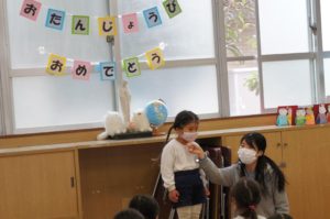 年長組では1月にお祝できなかったお友達も参加![]()