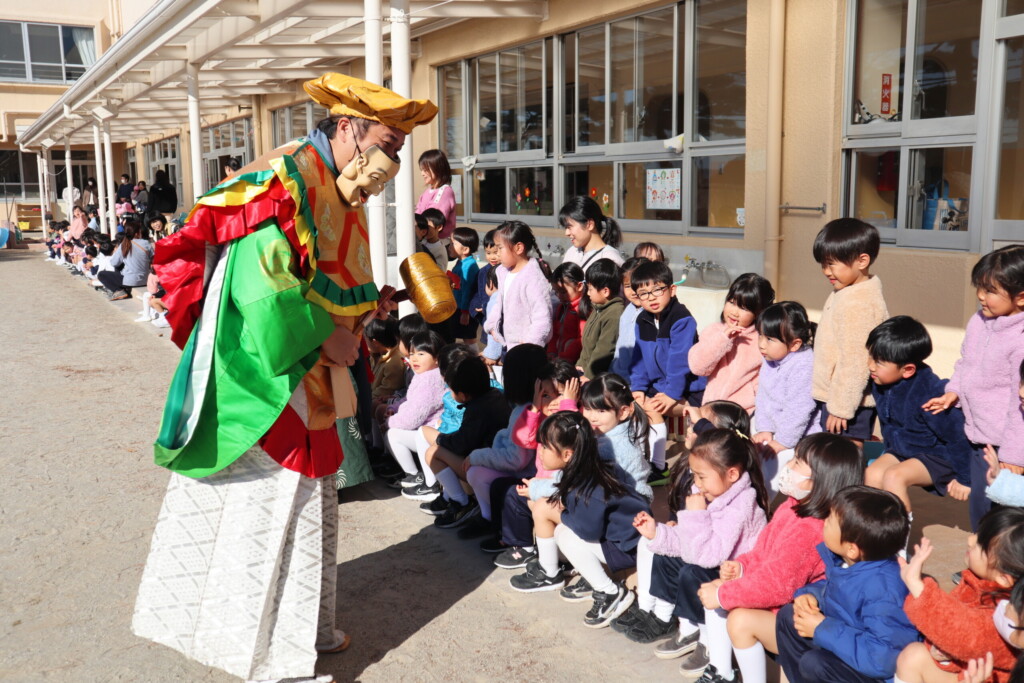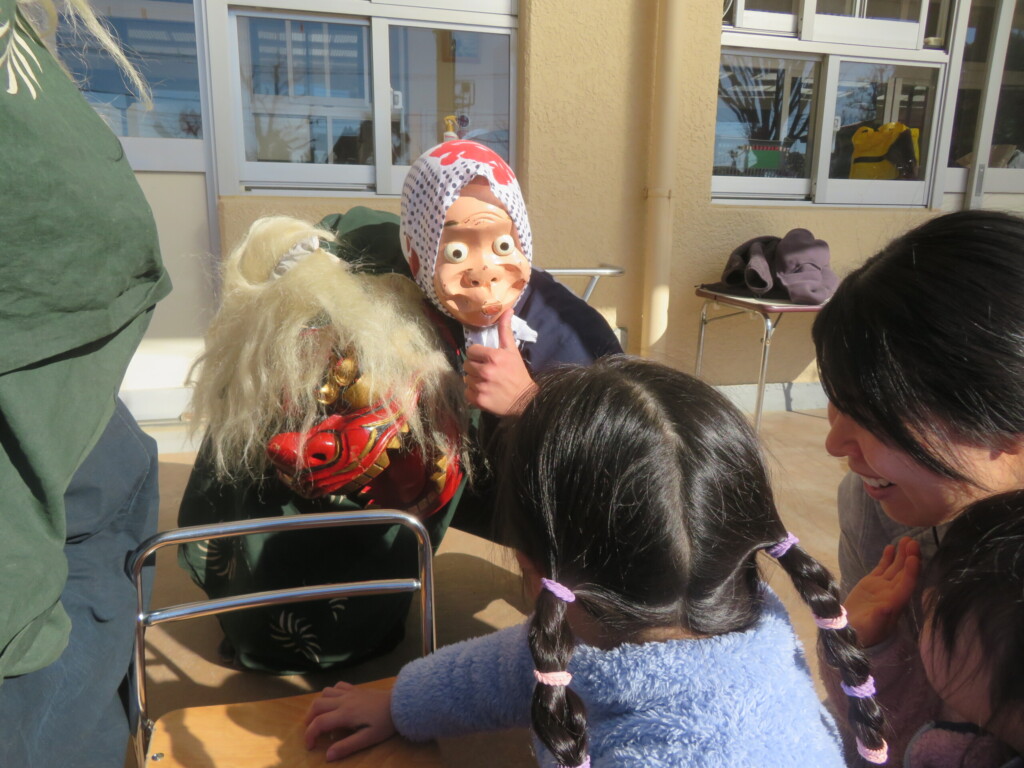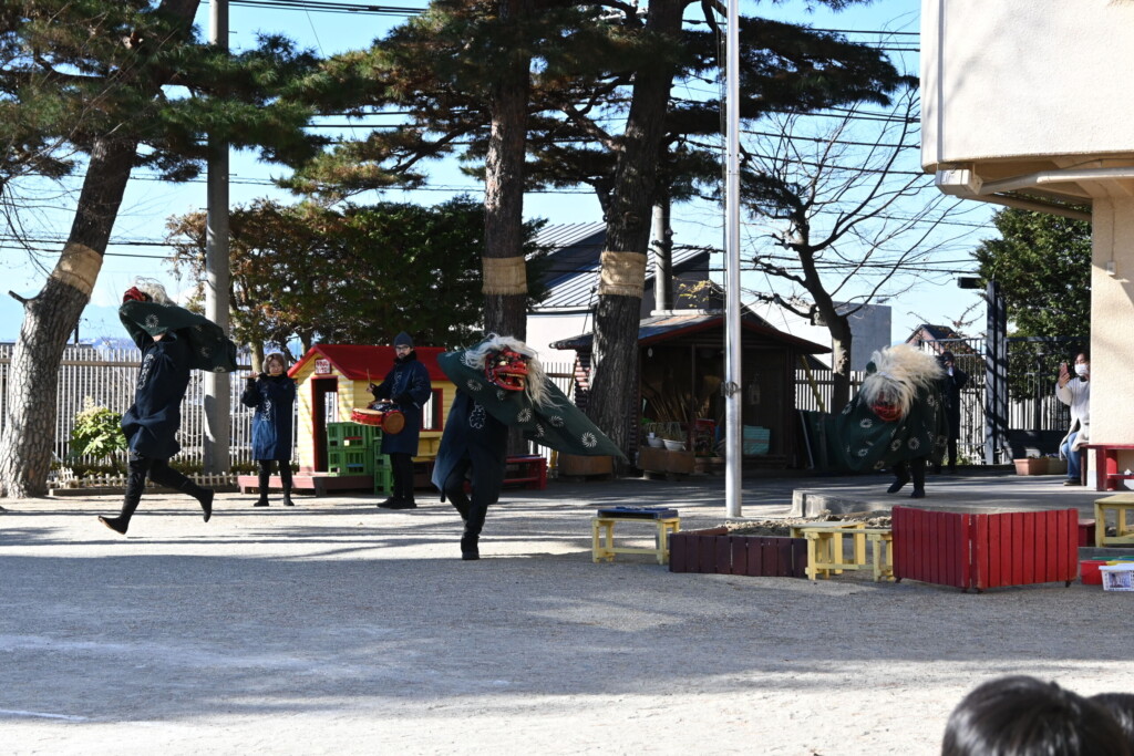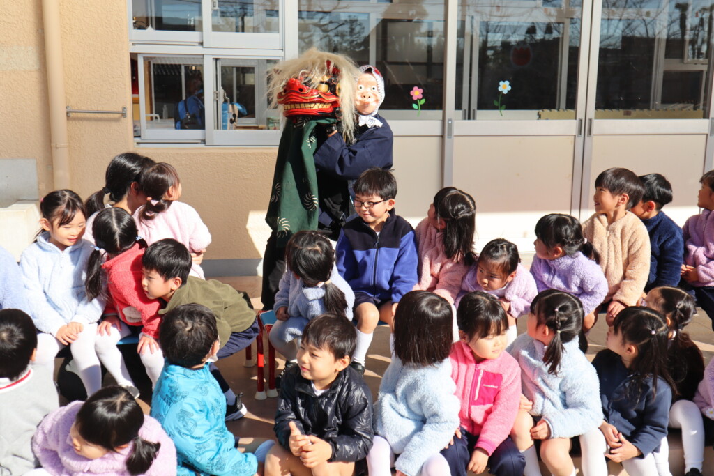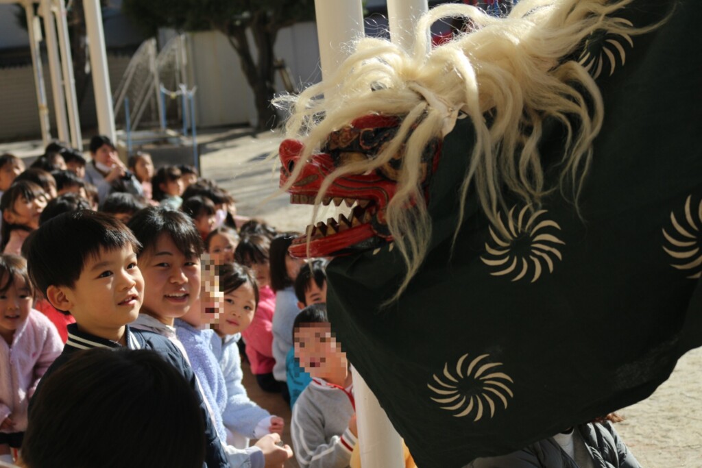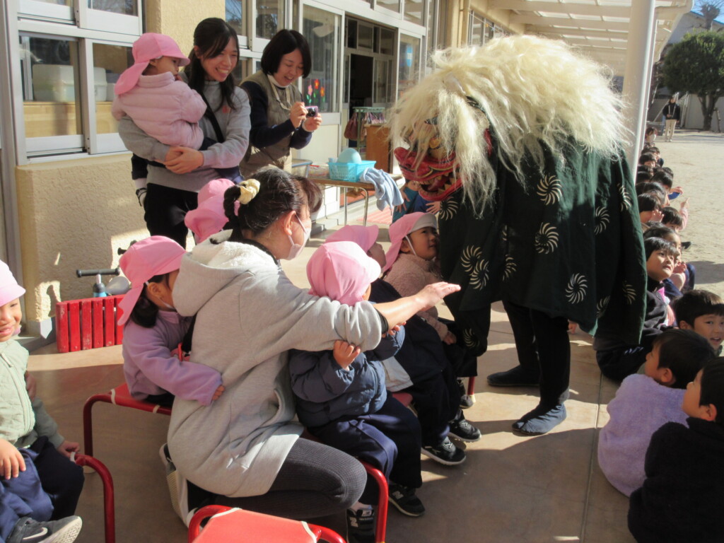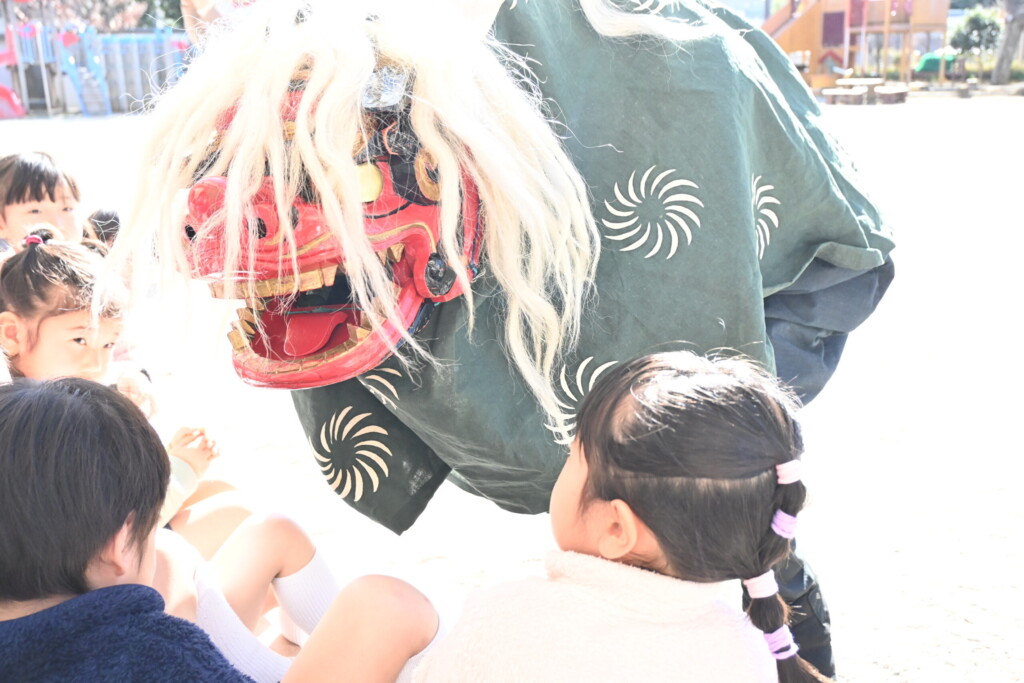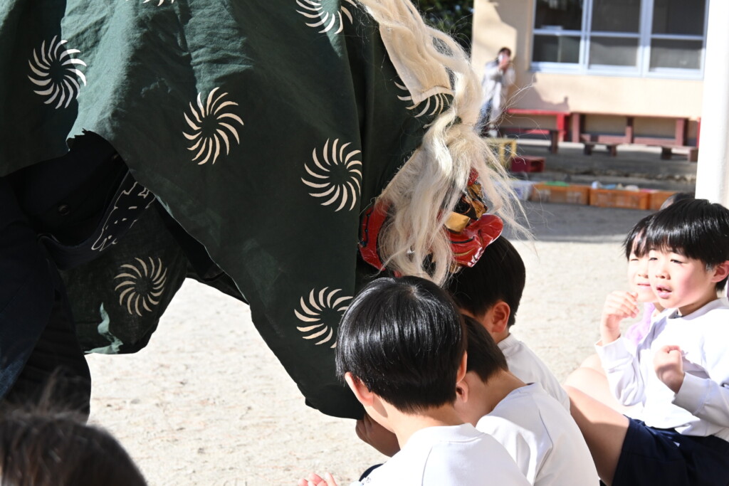 ひょっとこ獅子は、あちこち回ってくれて子どもたちもそわそわドキドキ😁